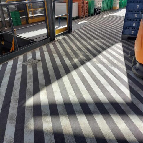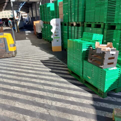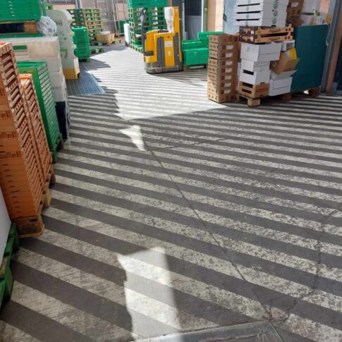 La problematica riscontrata era l’alta scivolosità nelle zone di carico dell’ortofrutta tutto l’anno e nelle restanti zone nel periodo invernale, soprattutto nelle giornate di pioggia.