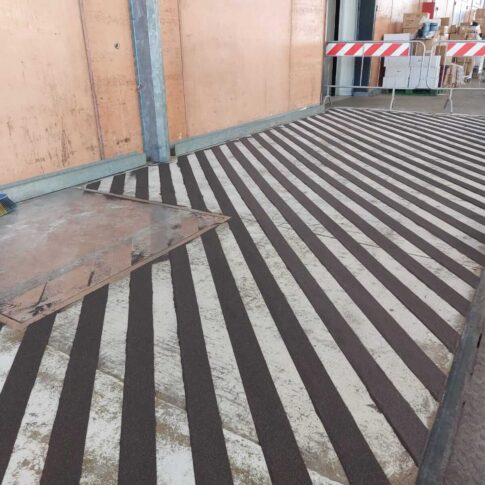 Con Safety-Grip™ abbiamo garantito l’utilizzo dell’area fino alle 9 di mattina consentendo lo scarico merci, dopo di ché abbiamo rivestito nella giornata circa 100mq di porzione di pavimentazione.