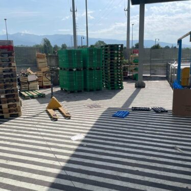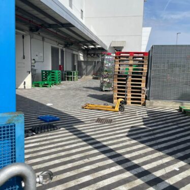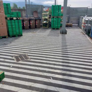 All’interno di una zona di carico/scarico di un centro commerciale di Figline Valdarno la problematica era data sempre dalla scivolosità della pavimentazione dell’area dell’ortofrutta tutto l’anno e nelle restanti zone nei periodo invernale e soprattutto nelle giornate di pioggia.
