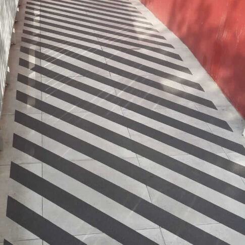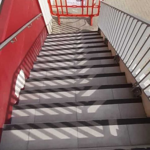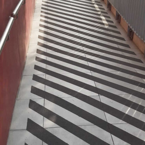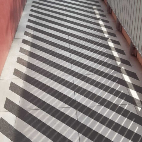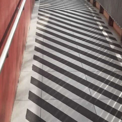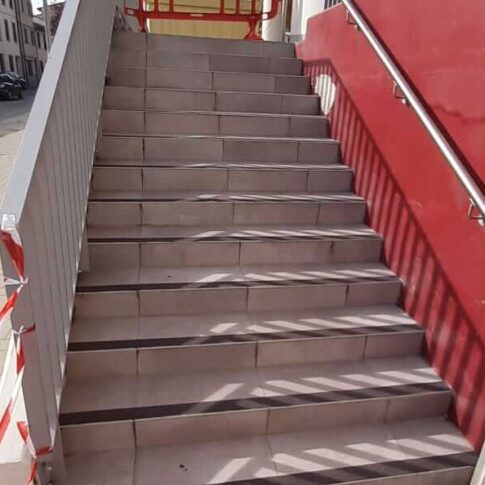 L’accesso alla piazza del centro commerciale avviene tramite una rampa per disabili e scale. Purtroppo, nelle giornate di pioggia o per il freddo invernale si verificava la formazione di ghiaccio rendendo la rampa e le scale pericolosissime.